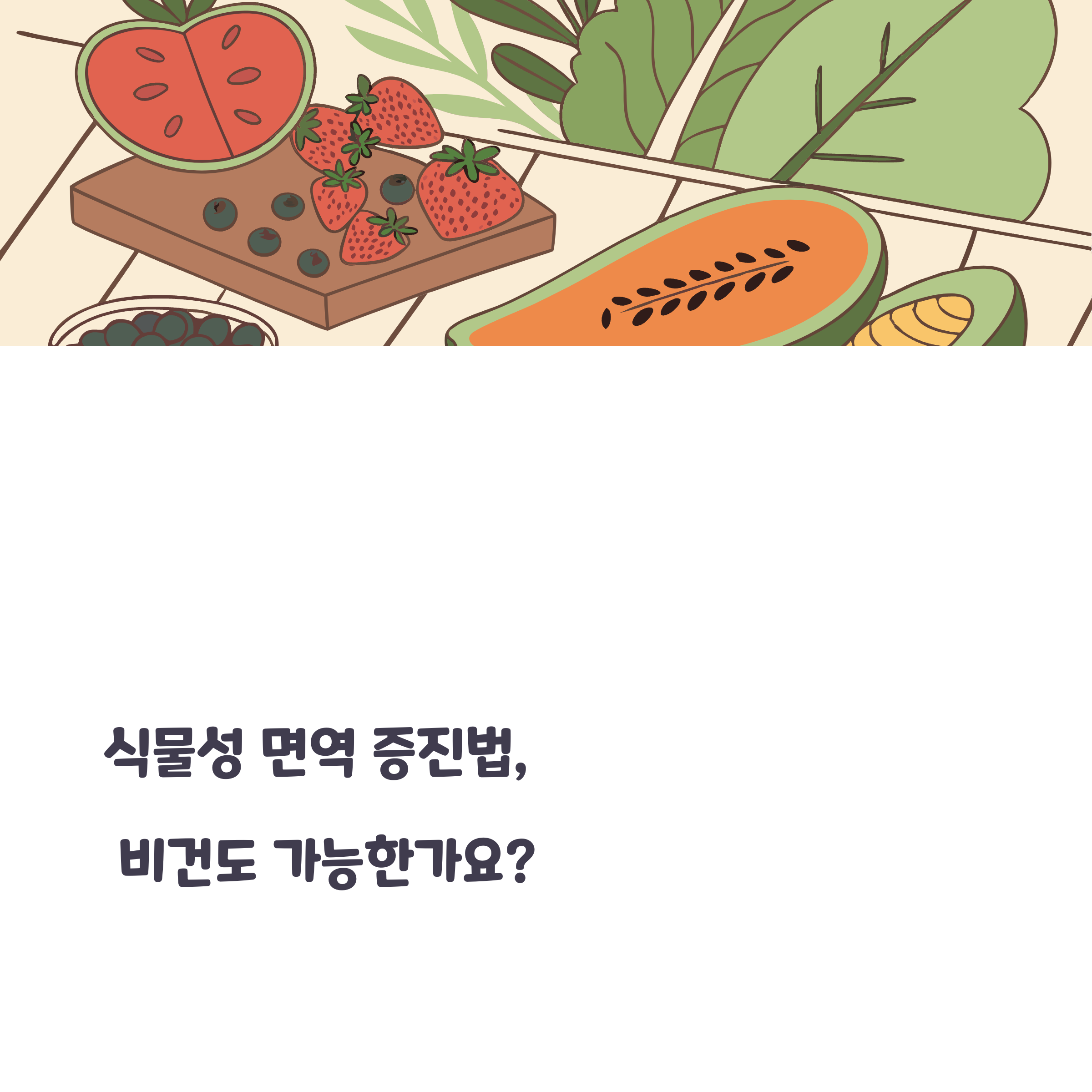 식물성 면역 증진법, 비건도 가능한 방법면역력을 키워야 하는 이유 - 건강한 삶의 기본면역력은 단순히 감기를 예방하는 차원을 넘어"몸 전체의 방어 시스템을 튼튼하게 만드는 핵심"입니다.바이러스, 세균, 염증성 질환은 물론,피로, 스트레스, 만성 질병까지 면역력과 밀접하게 연관되어 있습니다.특히 변화가 많은 현대 사회에서는의식적인 면역 관리가 필수입니다.식물성 식단이 면역에 좋은 이유식물성 식품은 "항산화제, 섬유질, 피토케미컬"이 풍부하여자연스럽게 염증을 줄이고 면역 기능을 강화합니다.동물성 식품보다 체내 염증 반응을 낮추고소화기 건강을 촉진해 면역력 향상에 탁월한 영향을 줍니다.비건 식단은 장기적으로 면역 체계의 균형을 잡아줍니다.비건이 챙겨야 할 핵심 영양소 - 비타민과 미네랄비건이라면 면역 강화에 ..