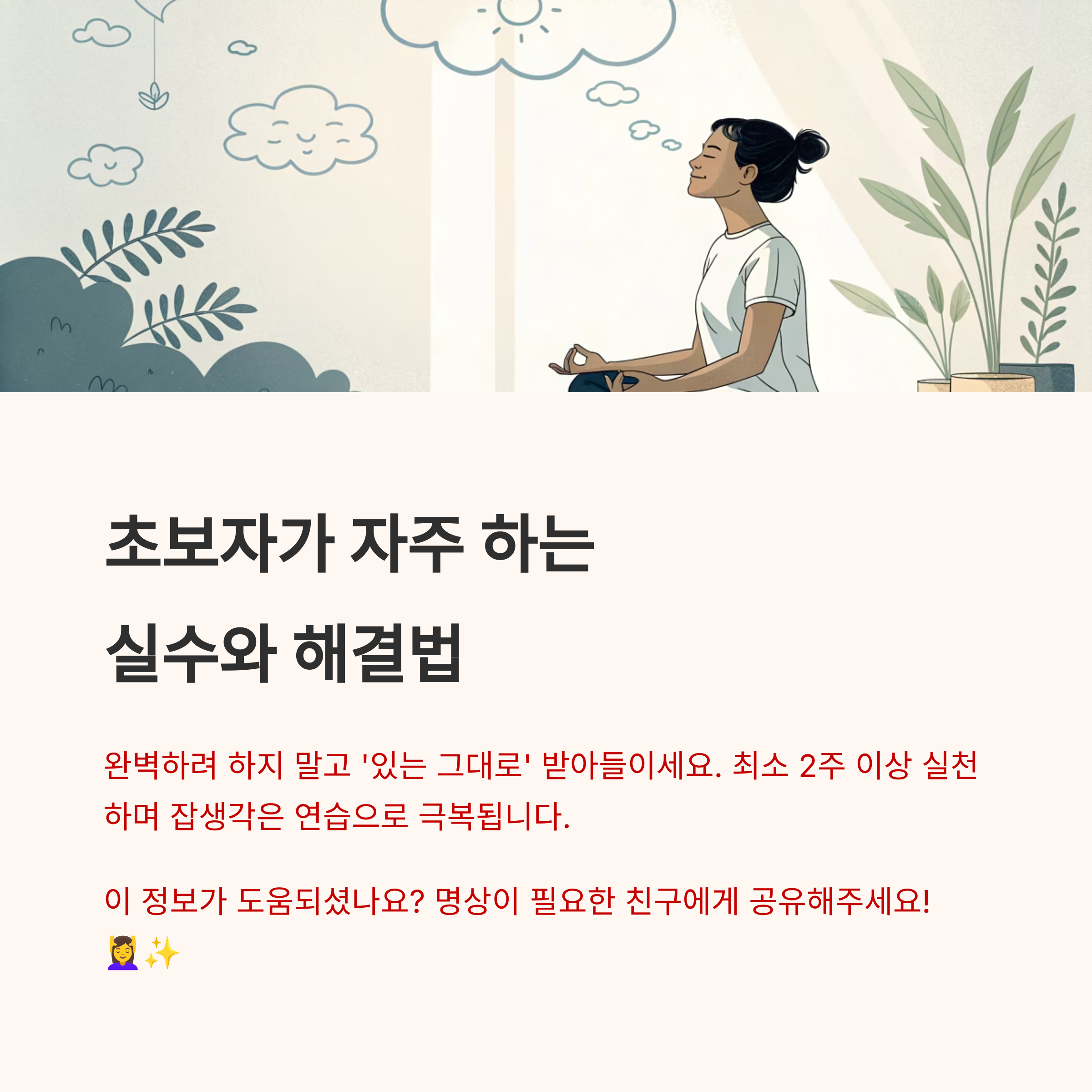스스로를 비난하거나 조급해하지 말고, 부드럽게 호흡에 다시 집중하는 연습이 필요합니다.
