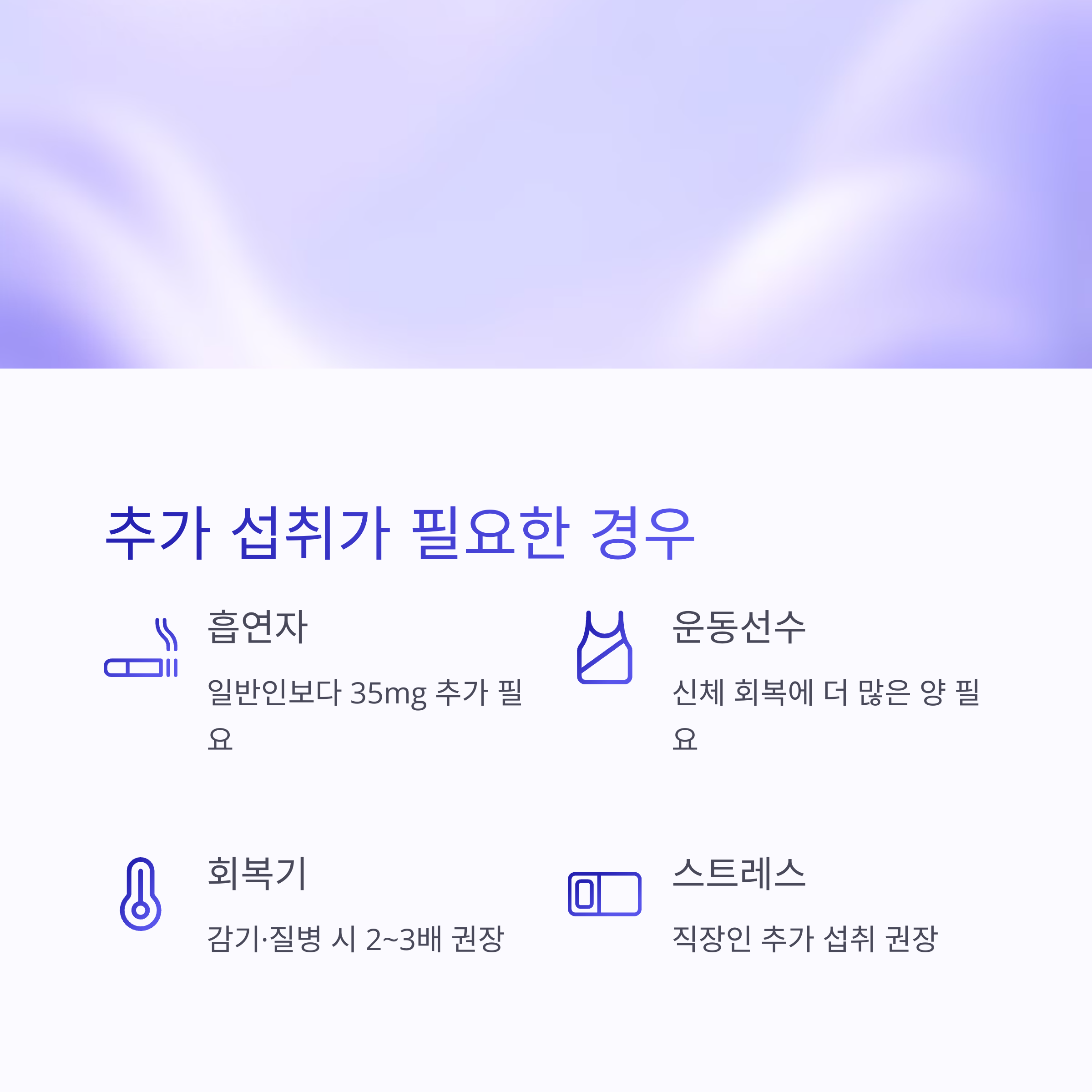 흡연자나 스트레스가 많은 경우 2배 이상 필요한 경우도 있습니다.