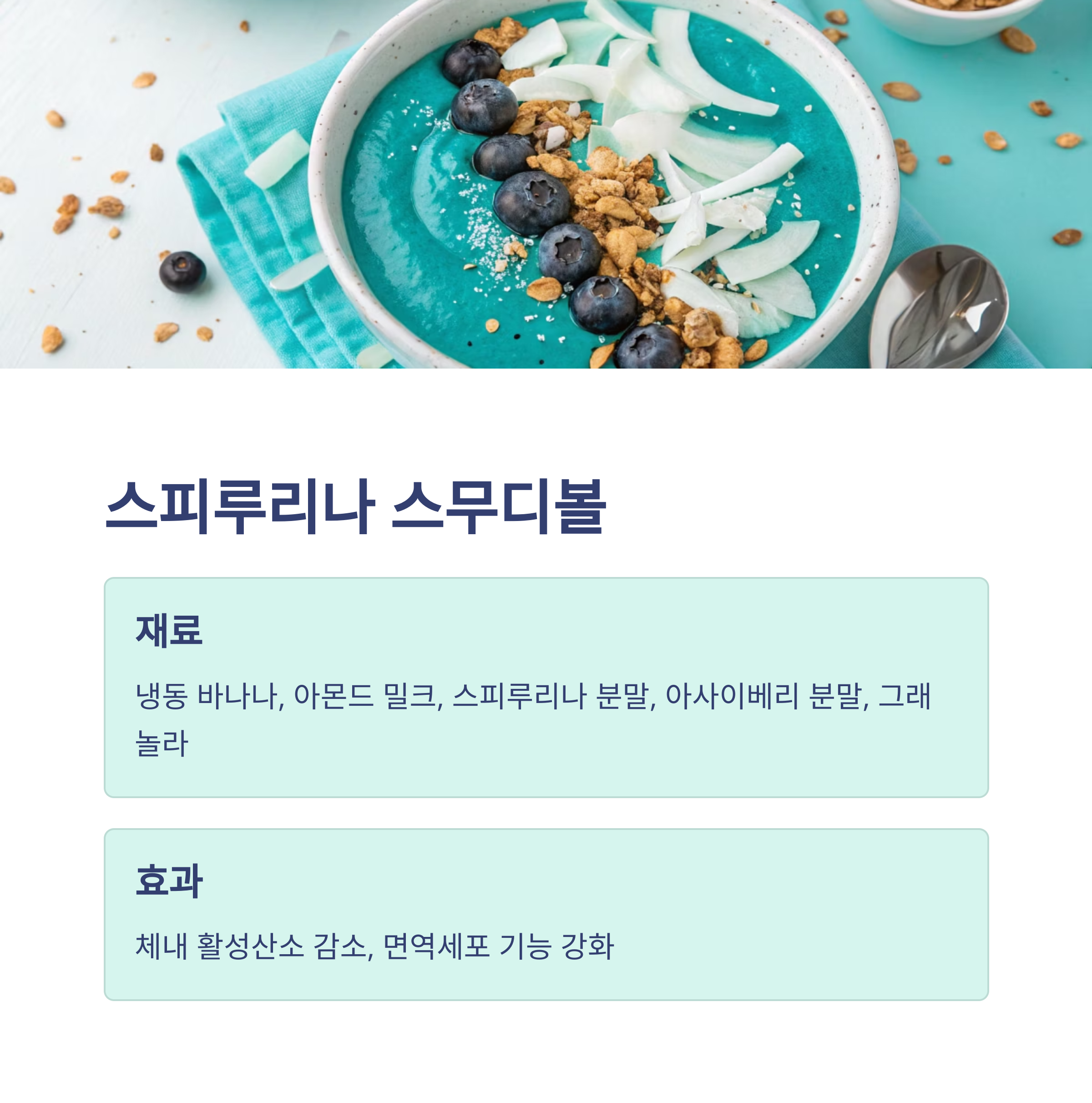 • 저녁 후: 스피룰리나 스무디볼 디저트