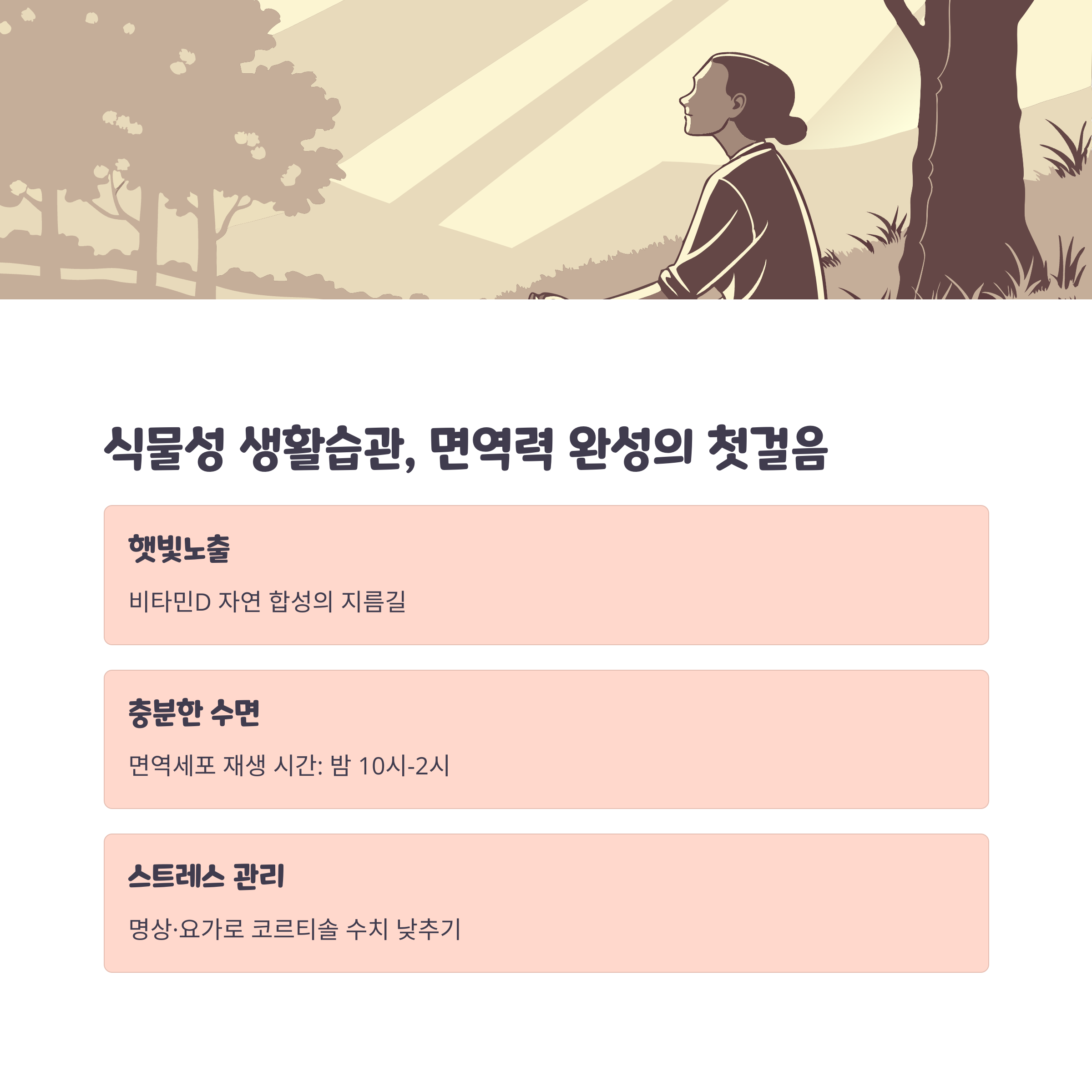 식물성 생활습관 팁 - 햇빛, 수면, 스트레스 관리