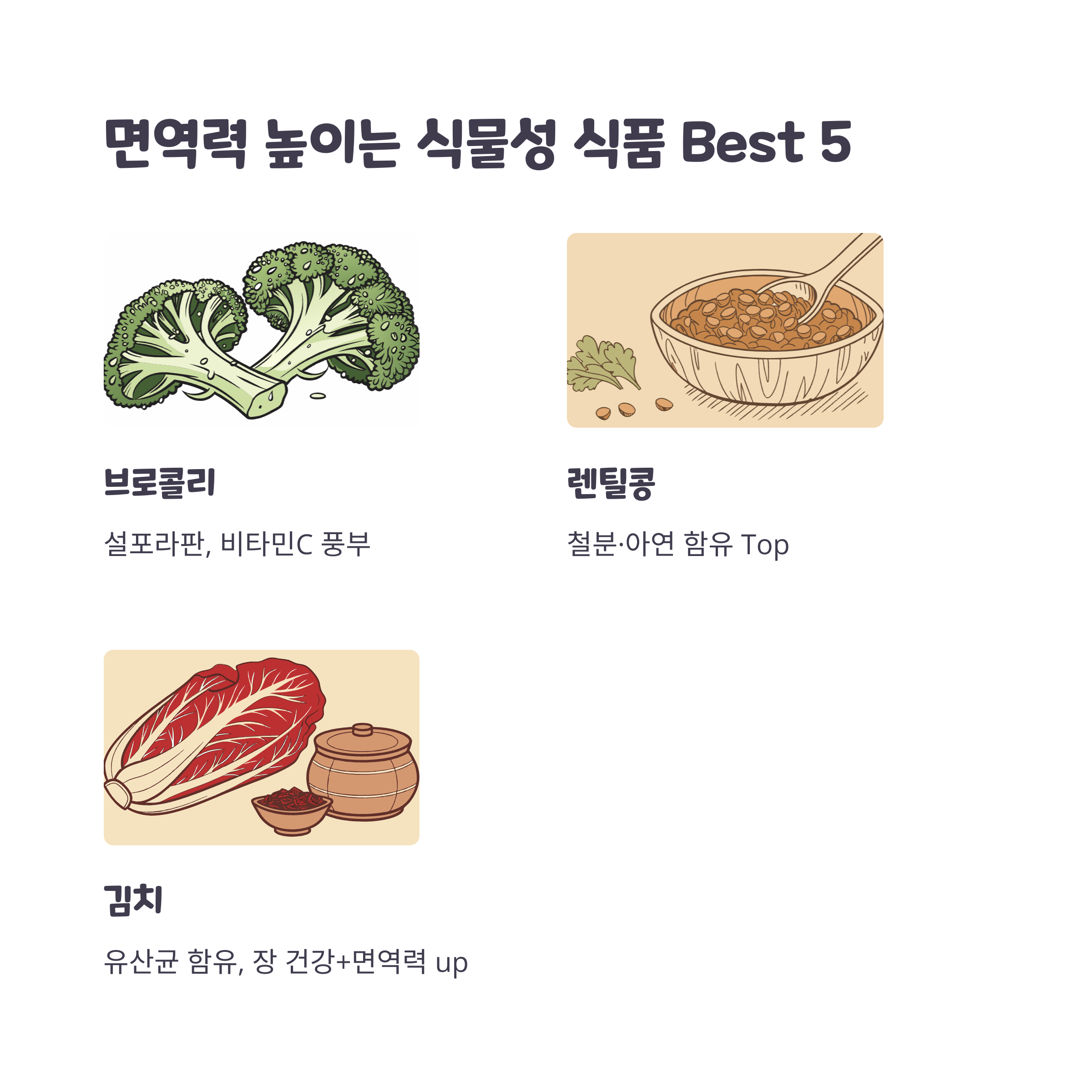 - 브로콜리: 면역 세포 활성화에 탁월