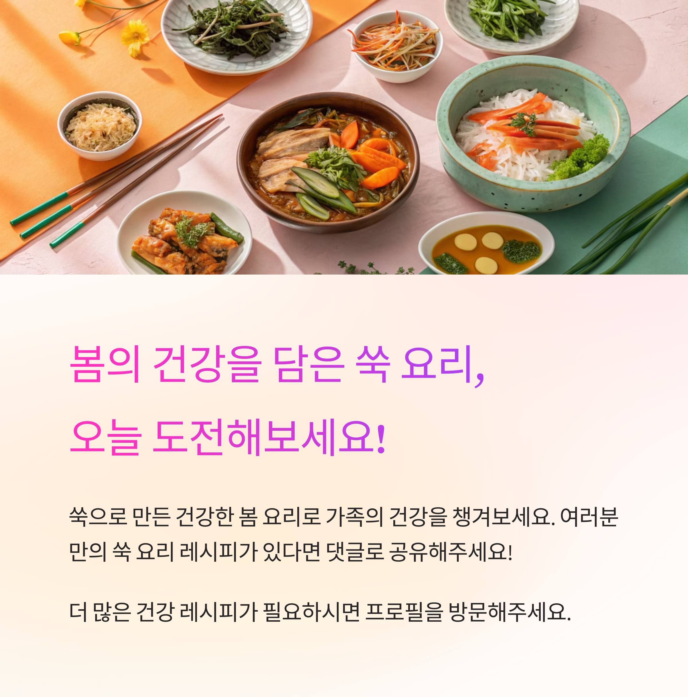"작은 팁 하나로 쑥요리의 품격이 달라집니다."