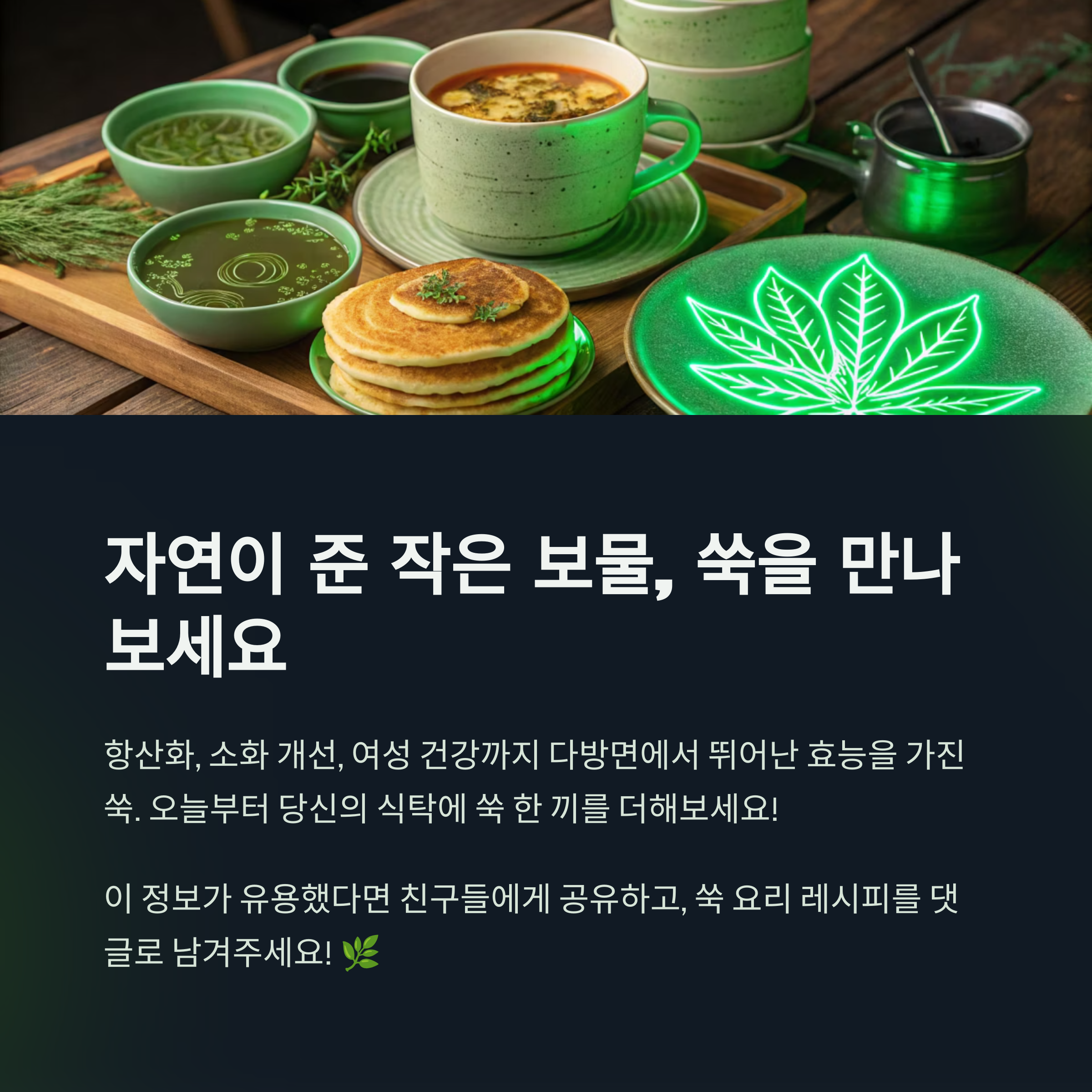 당장 집 앞 마트에서 쑥 한 봉지를 사서, 오늘 저녁 한 끼부터 시작해 보세요!