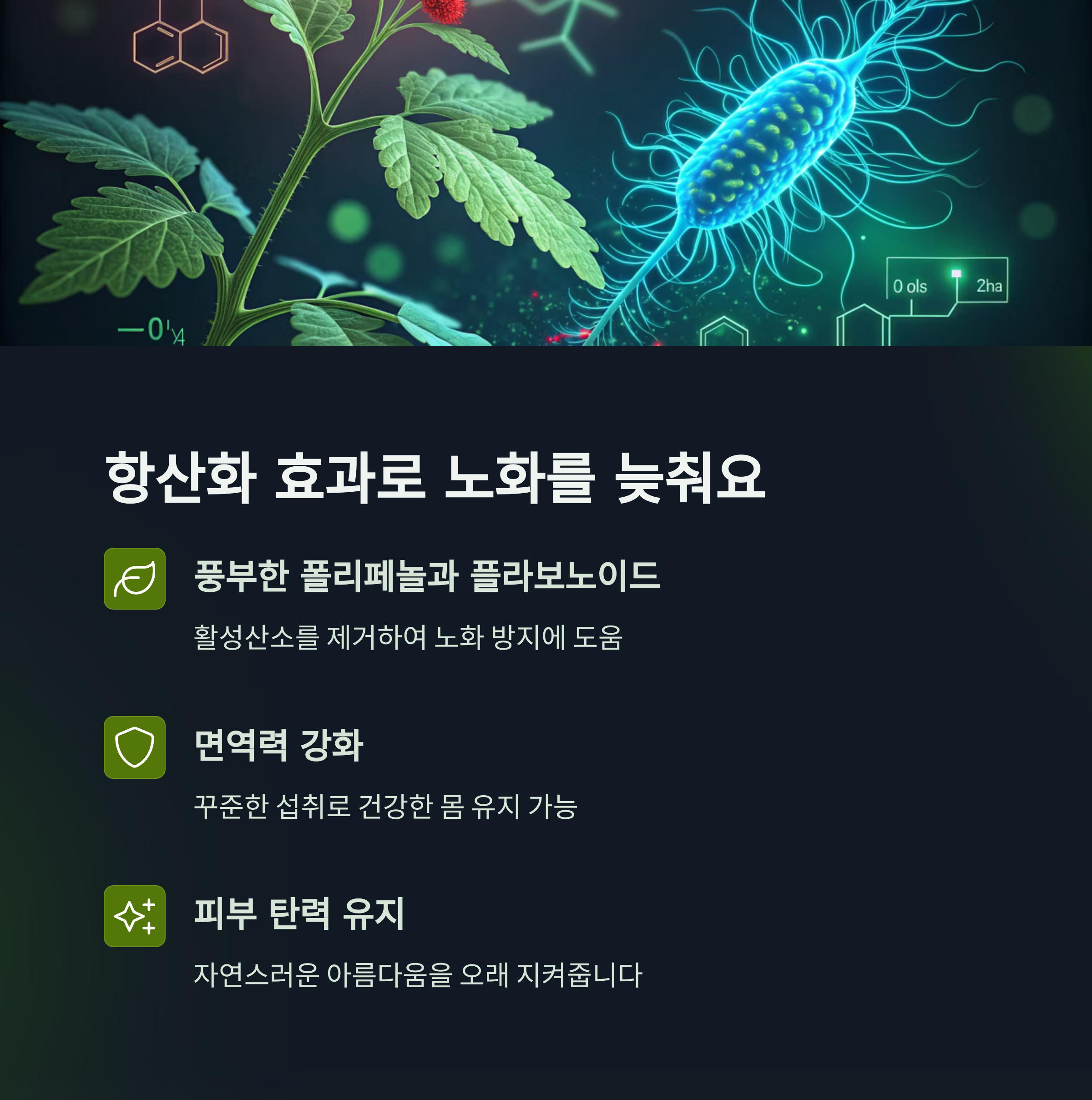 이 성분들은 세포를 손상시키는 활성산소를 제거하는 데 중요한 역할을 합니다.