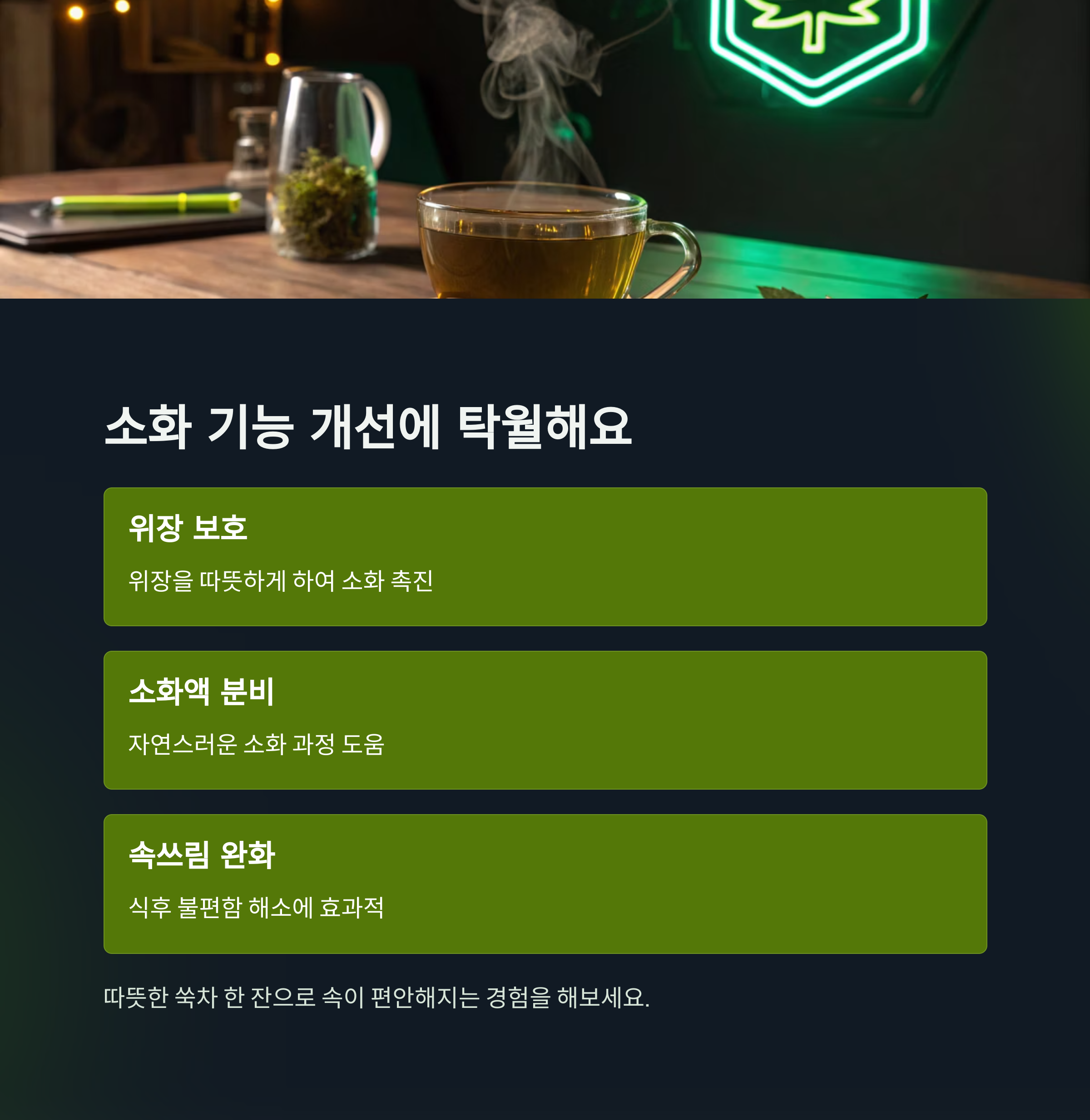 "따뜻한 쑥차 한 잔으로 속이 편안해지는 경험, 직접 느껴보세요."