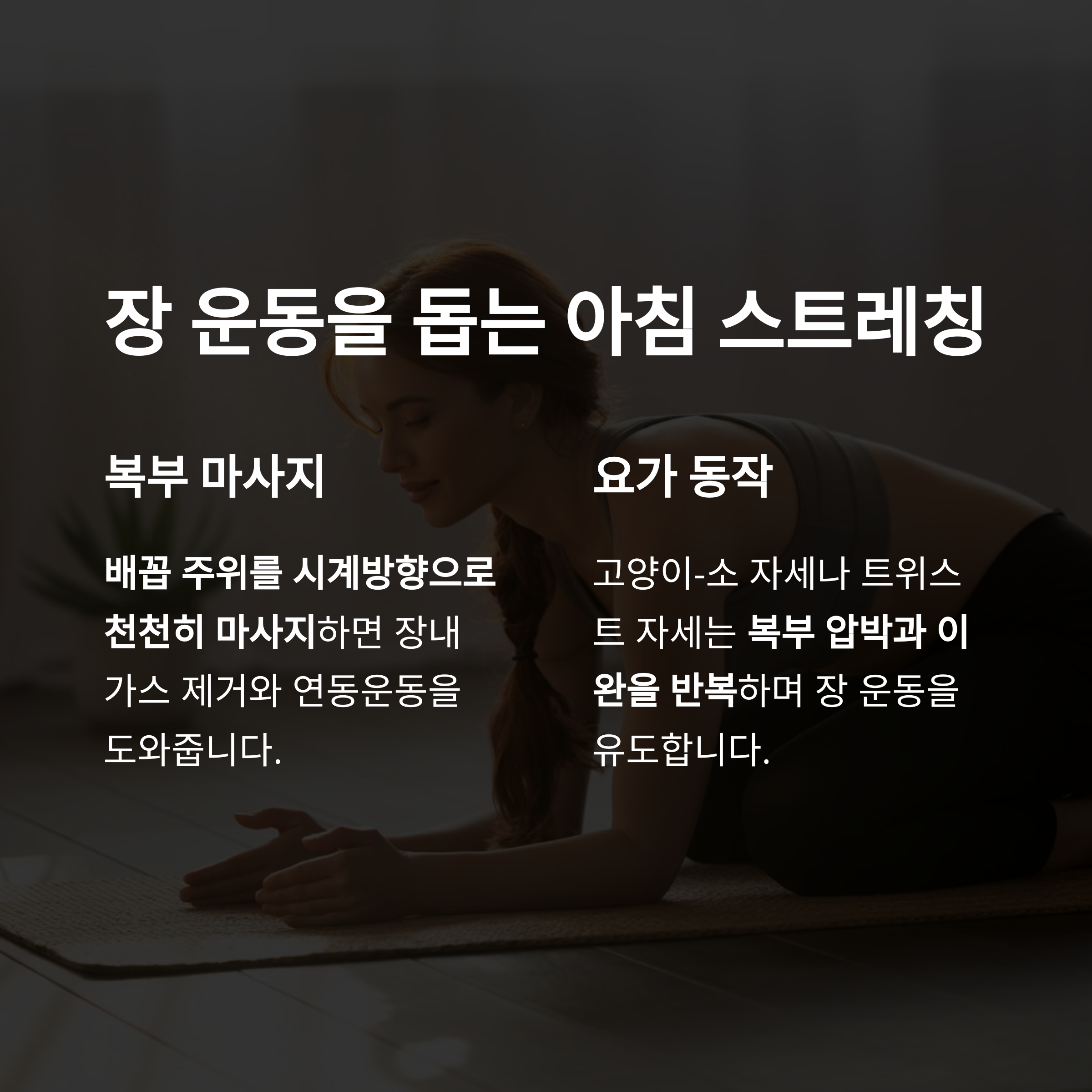 아침 스트레칭과 복부 마사지로 장 운동 유도