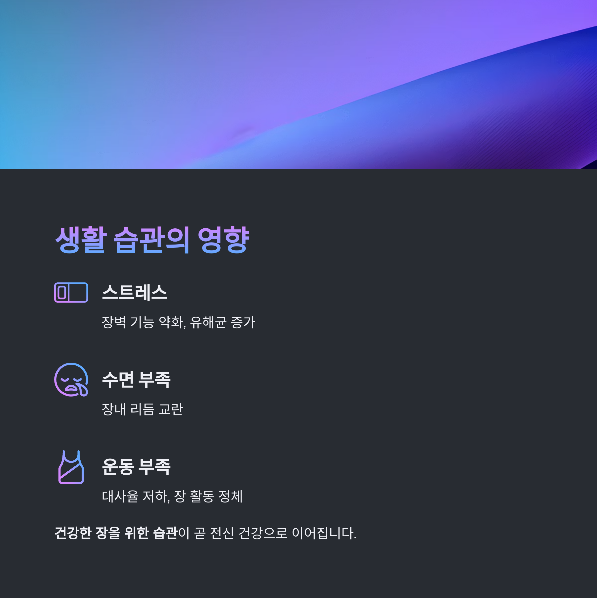 건강한 장을 위한 습관이 곧 전신 건강으로 이어집니다.