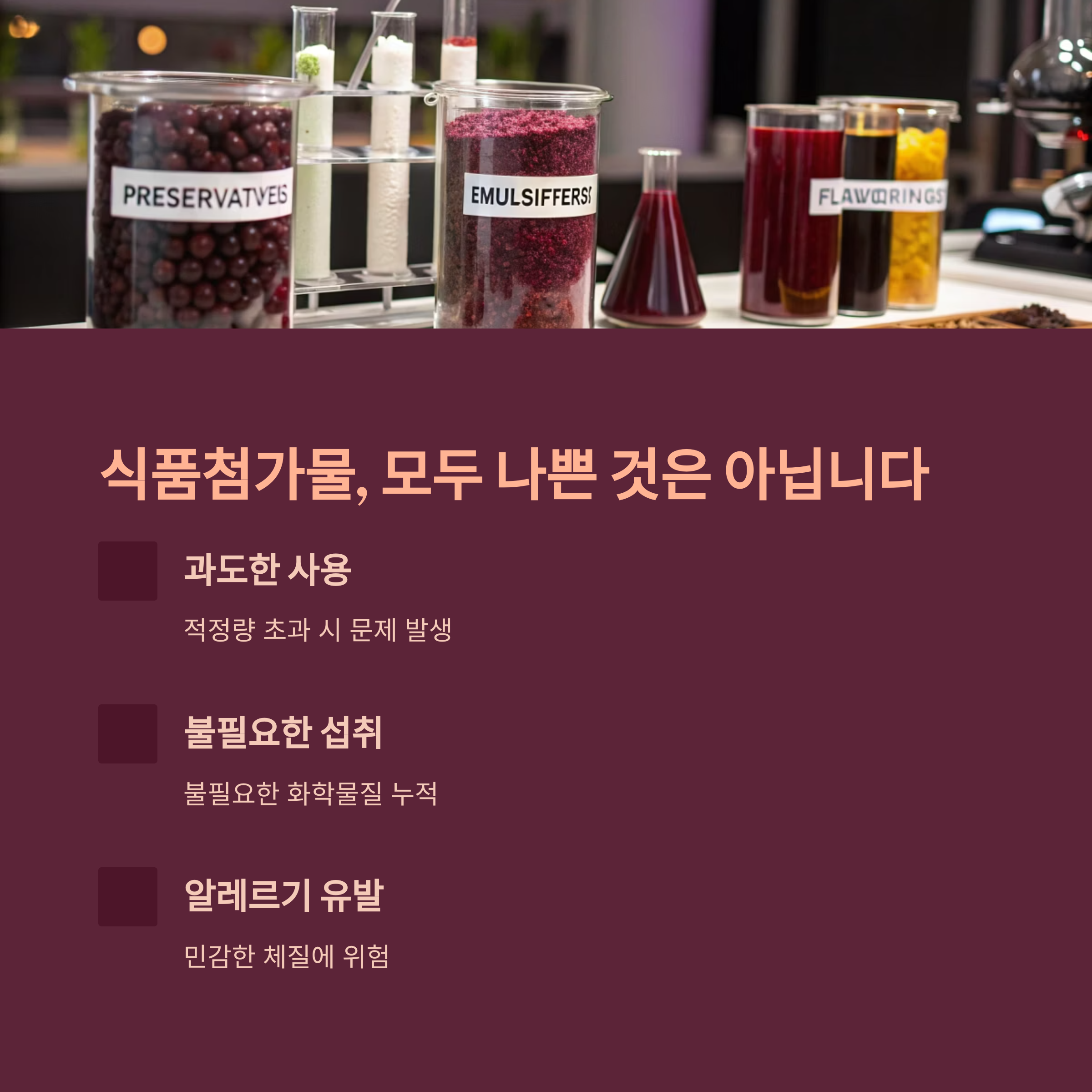 문제는 과도한 사용, 불필요한 섭취, 알레르기 유발 가능성입니다.