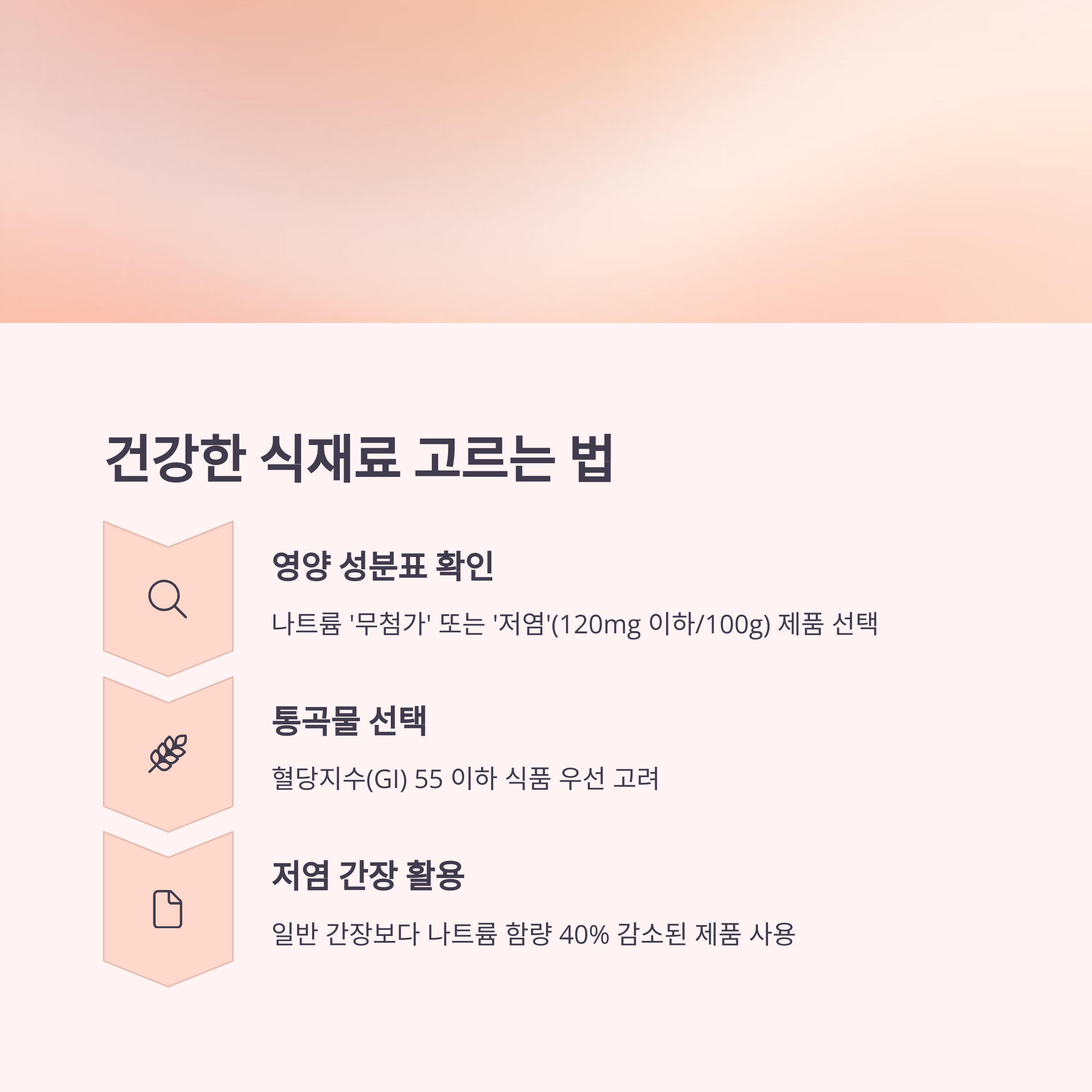 저염 저당 식단의 핵심은 "가공식품을 최소화하는 것"입니다.