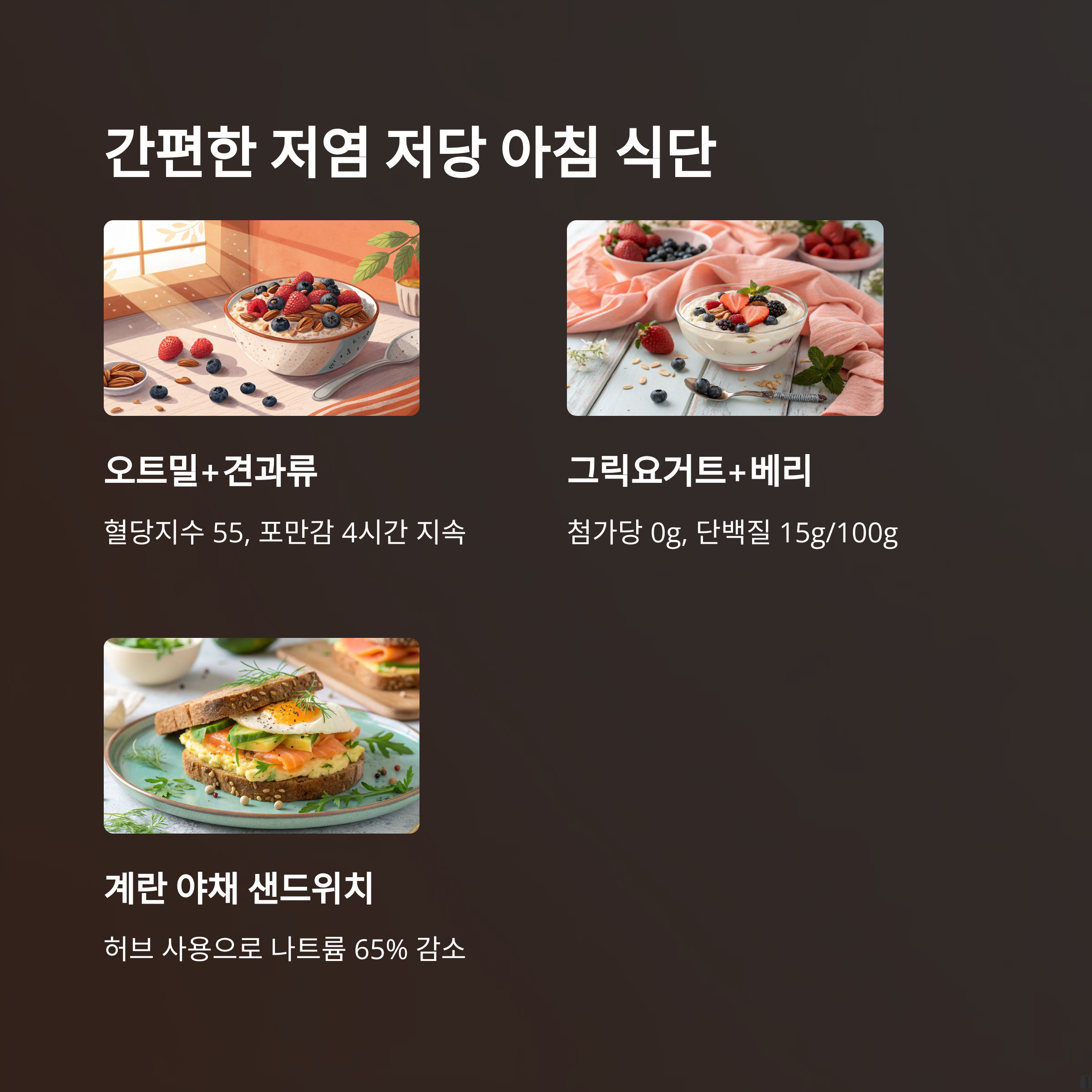 또는 "그릭 요구르트에 무가당 그래놀라와 과일"을 추가해도 좋습니다.