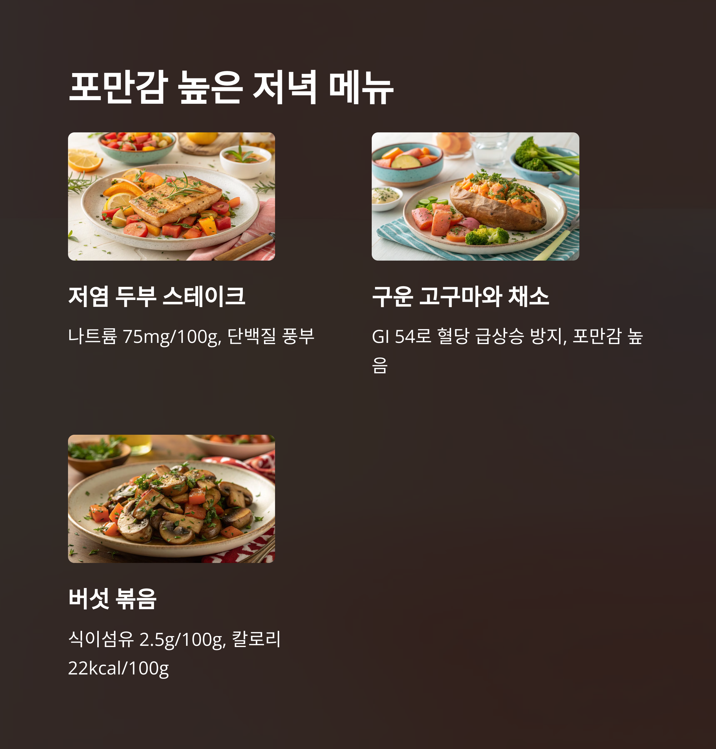 포만감 높은 저염 저당 저녁 메뉴