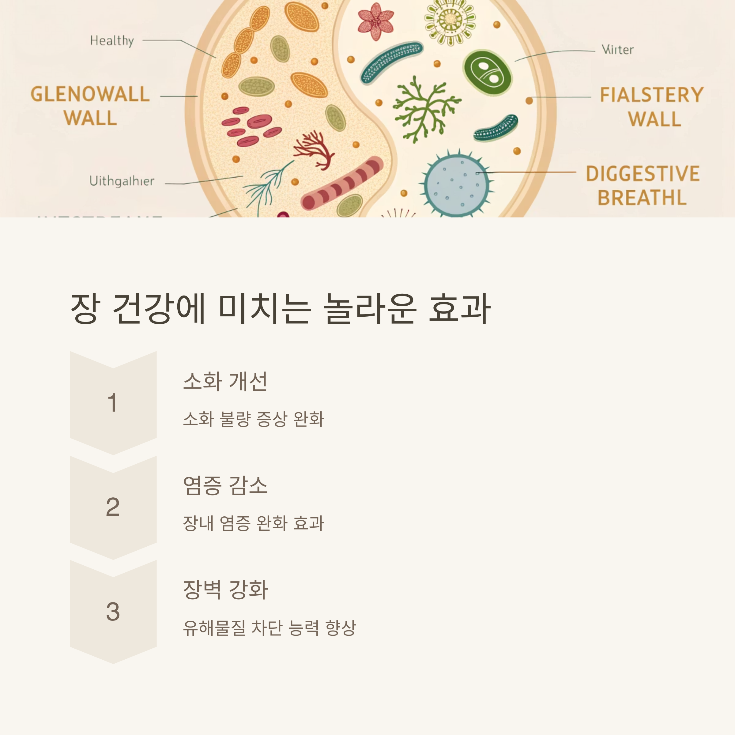 면역세포의 70%가 장에 존재하기 때문에, 면역력 강화에도 직접 연결됩니다.