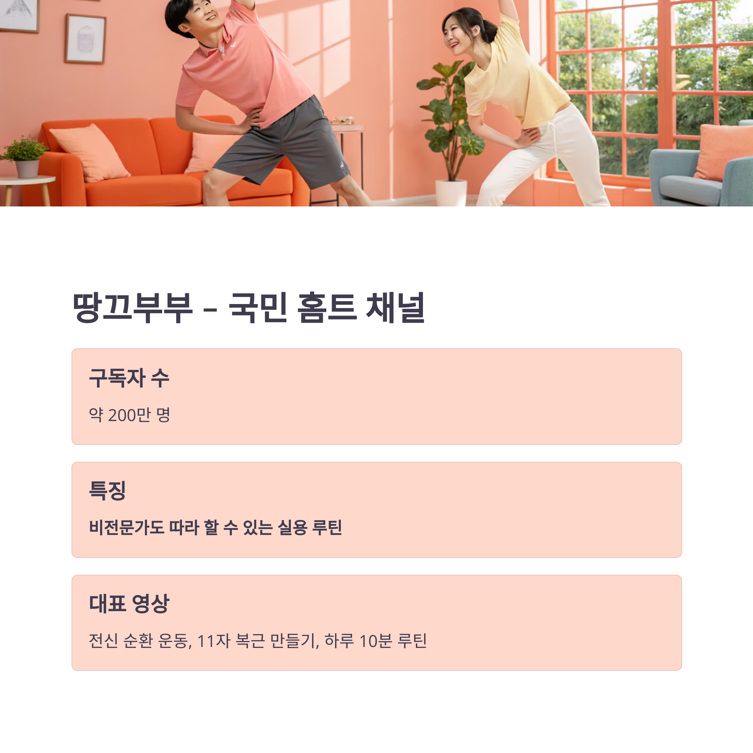 2. 땅끄부부 – 따라 하기 쉬운 국민 홈트 채널